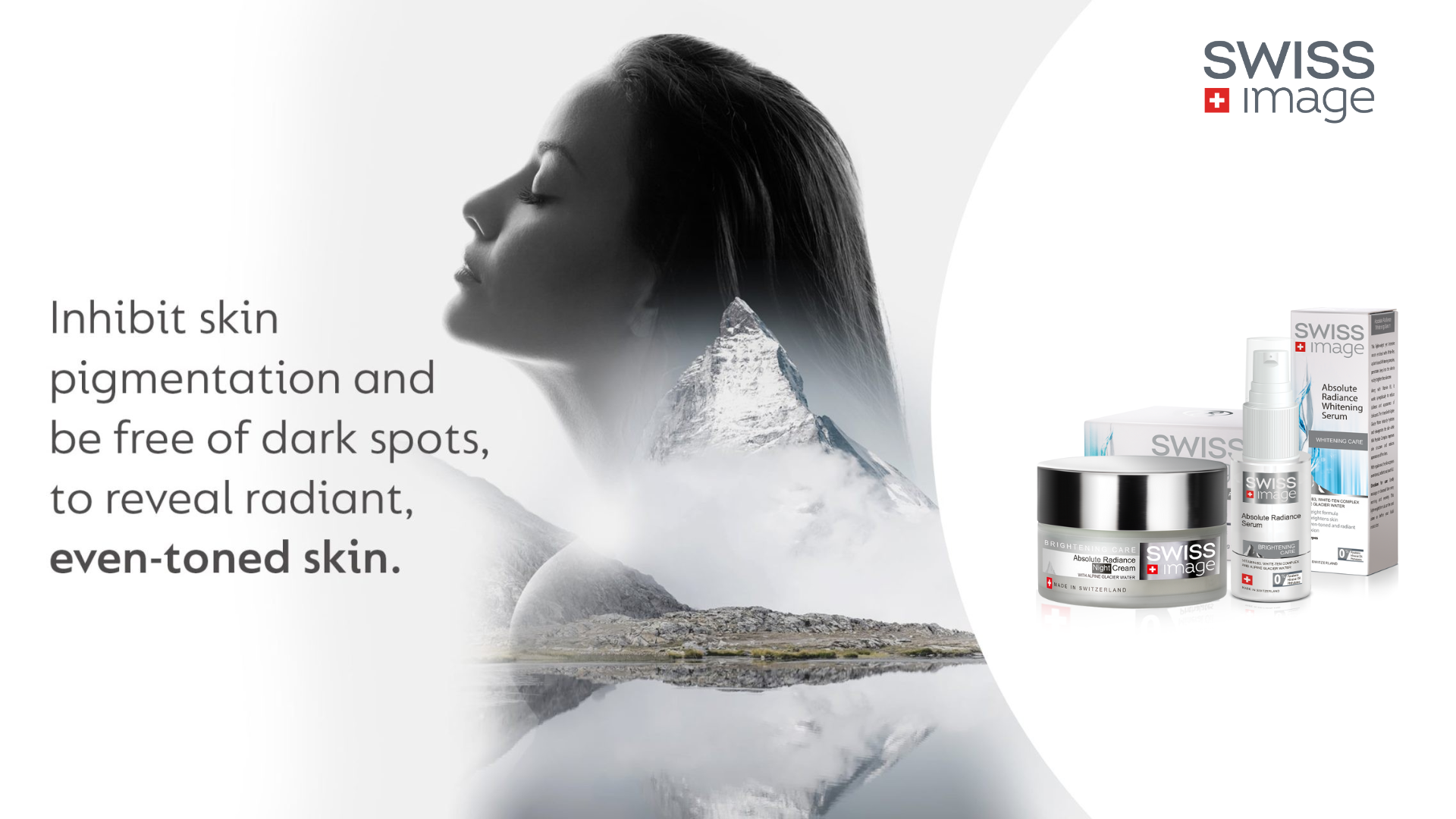 Chu trình chăm sóc da được thiết kế giàu chất siêu dưỡng với Nước Băng Tan Alpine tinh khiết, Vitamin B3 và Phức hợp Botanical White-Ten từ Thụy Sĩ. Dòng sản phẩm chăm sóc làm sáng da giúp ức chế sắc tố da, làm giảm các đốm đen, vết thâm, đồng thời tăng cường độ rạng rỡ tự nhiên cho làn da.