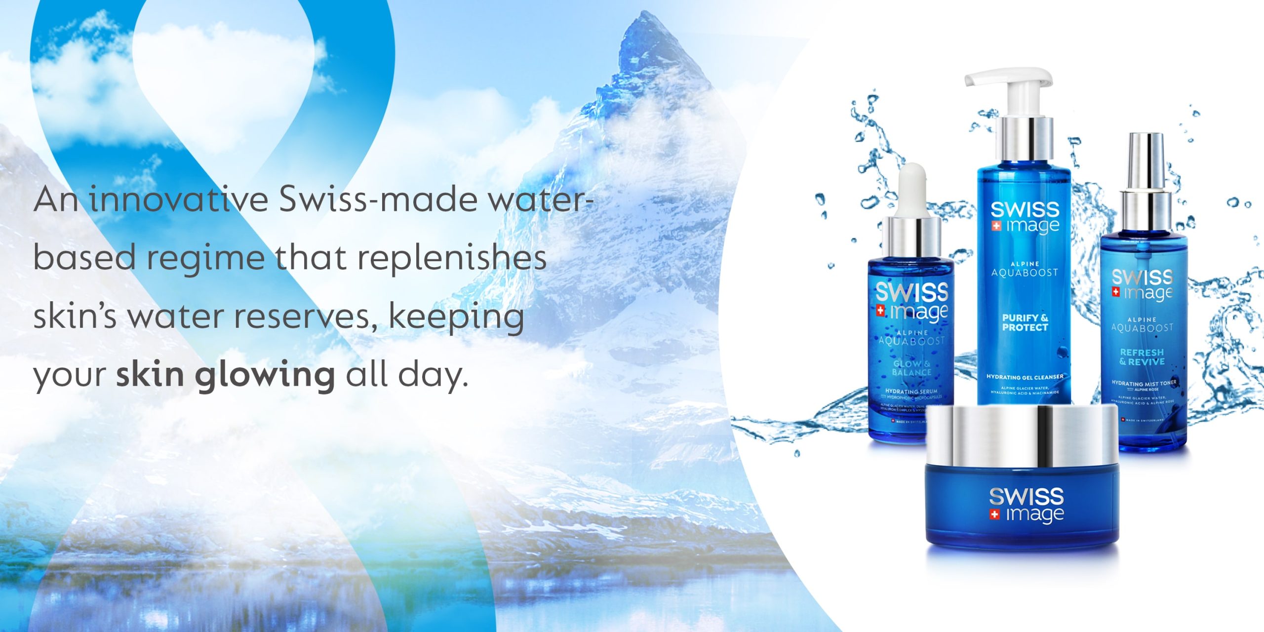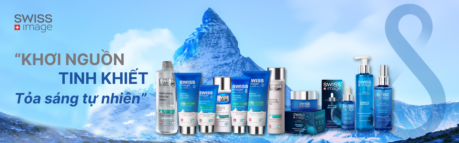 Dòng sản phẩm Chăm sóc thiết yếu, được chiết xuất từ nước băng tan tinh khiết nhất vùng núi Alps của Thụy Sĩ và các chiết xuất thực vật mạnh mẽ của Thụy Sĩ, mang đến sự kết hợp tuyệt vời giữa khả năng thanh lọc sâu, dưỡng ẩm mạnh mẽ và nuôi dưỡng làn da, giúp làn da được hồi sinh, cân bằng và rạng rỡ tự nhiên.